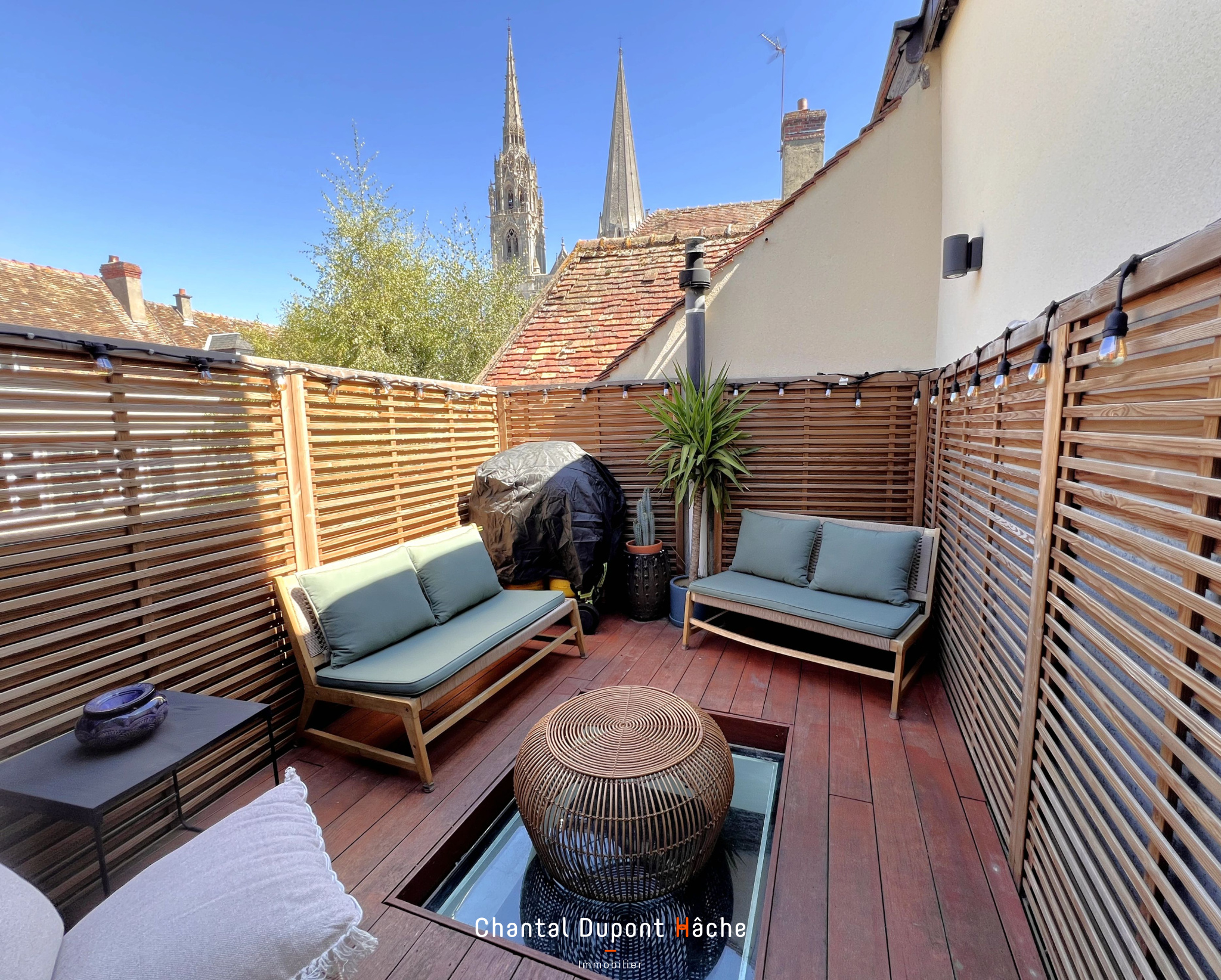 Votre Agence "Chantal Dupont Hâche immobilier" vous propose à la vente en plein coeur de ville de Chartres, dans une rue au calme, cette magnifique maison de ville du XIXème avec terrasse vous offrant un panorama unique sur la Cathédrale de Chartres. Son charme intemporel et sa décoration actuelle et soignée se déploie sur 170m². Dès l'entrée, le charme opère... une suite avec chambre, dressing et salle de bains (bain et douche) permettra d'accueillir famille, amis ou tout simplement en espace indépendant pour travailler de chez soi en toute discrétion et indépendance des pièces de vie. A la suite, un wc séparé et une buanderie-chaufferie (gaz de ville). La découverte du 1er étage provoque le coup de foudre pour cette demeure ancienne : un espace de vie de plus de 52m² avec parquets, cheminée, lumière, belle hauteur sous plafond. La cuisine design indépendante toute proche avec son puits de lumière vous permettra de préparer vos repas en toute tranquillité tout en pouvant jeter un regard sur vos convives. Quelques volées de marches au-dessus, l'espace détente, apéritif pour vos soirées d'été avec la terrasse aménagée et sans vis-à-vis. Côté nuit 3 chambres bénéficient depuis peu du confort de la climatisation Daikin connectée, rangements et salle de bains avec wc. Un grenier isolé aux poutres apparentes vous offrira un bel espace de stockage. La cave en totalité sous la maison et à bonne température préservera vos bons flacons. Plus qu'une maison... Un Art de vivre... Possibilité d'acheter un stationnement en supplément.