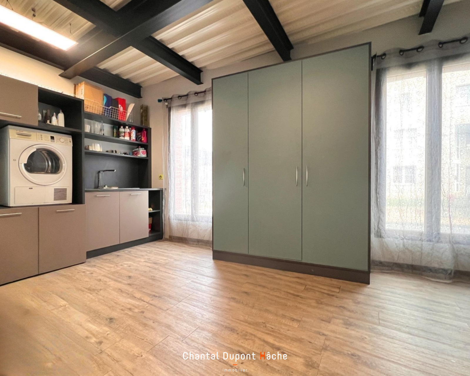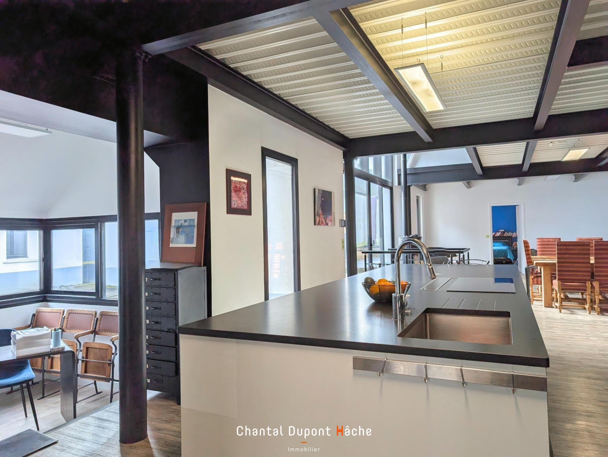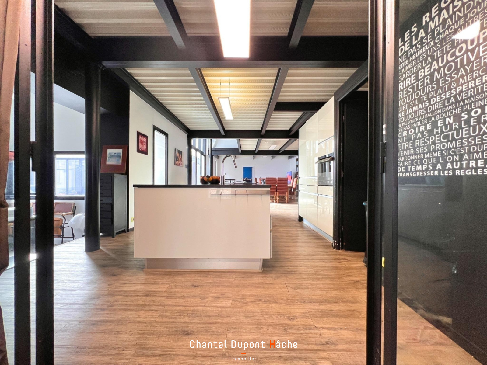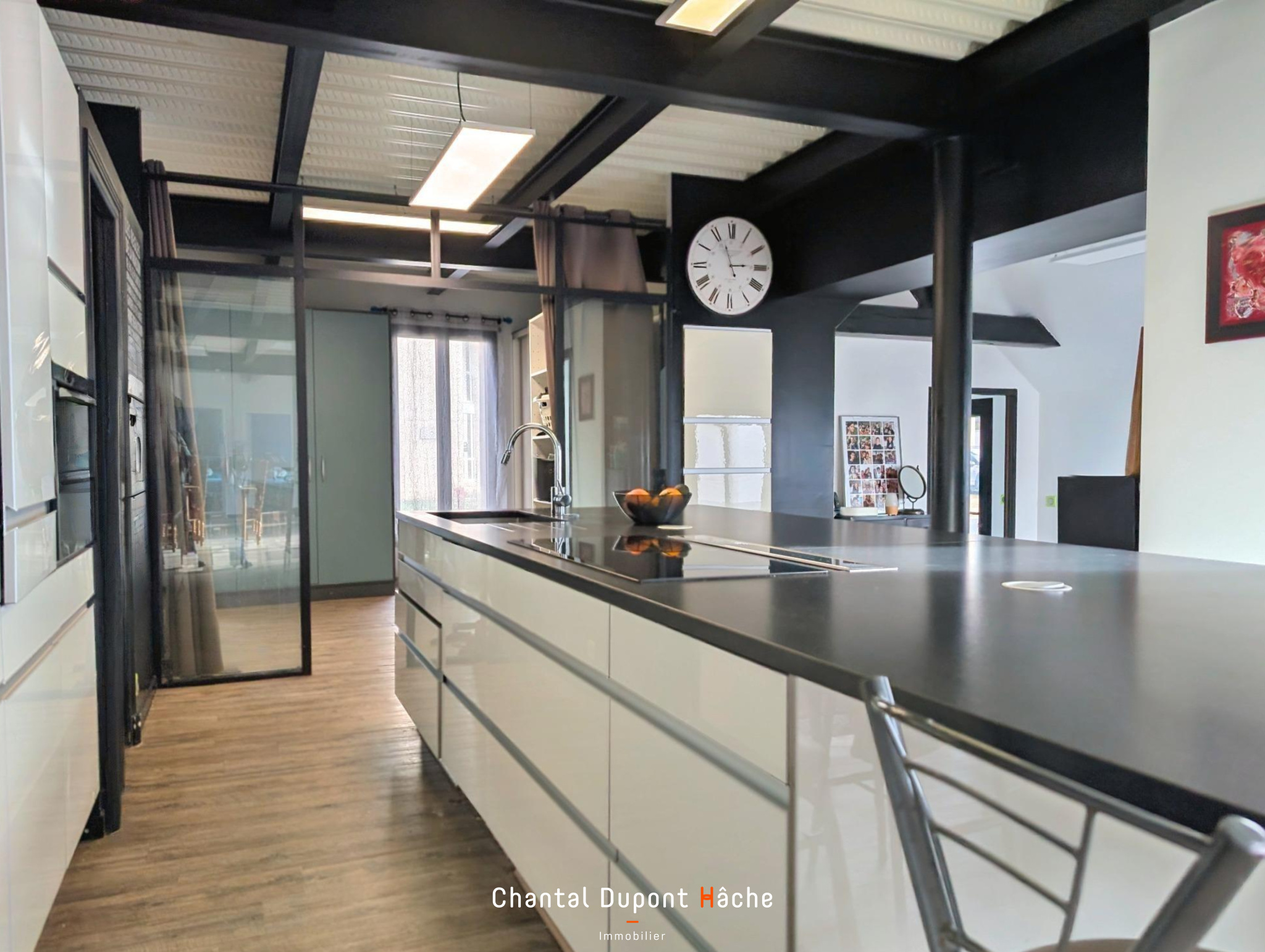 Votre Agence "Chantal Dupont Hâche immobilier vous propose à la vente dans un quartier proche centre ville et Ecole Sainte Marie, une maison pas comme les autres... Rénovée dans un esprit loft, elle totalise une superficie d'environ 226m². Au rez de chaussée, une fois passée l'entrée vous serez séduits par son espace à vivre d'environ 77m² intégrant une cuisine ouverte et l'avantage de deux pièces de service: grand cellier attenant à la cuisine et vaste buanderie avec placards. En complément du chauffage au sol vous profiterez également d'un poêle à bois. le rez de chaussée se prolonge d'une suite parentale. Par un escalier de type industriel l'étage vous propose 4 chambres, salle de bains et wc. Le palier permet d'avoir une vue sur tout le rez de chaussée. A l'extérieur, un bureau climatisé d'environ 20m² sera idéal pour le télétravail et la cour permet le stationnement de plusieurs véhicules.