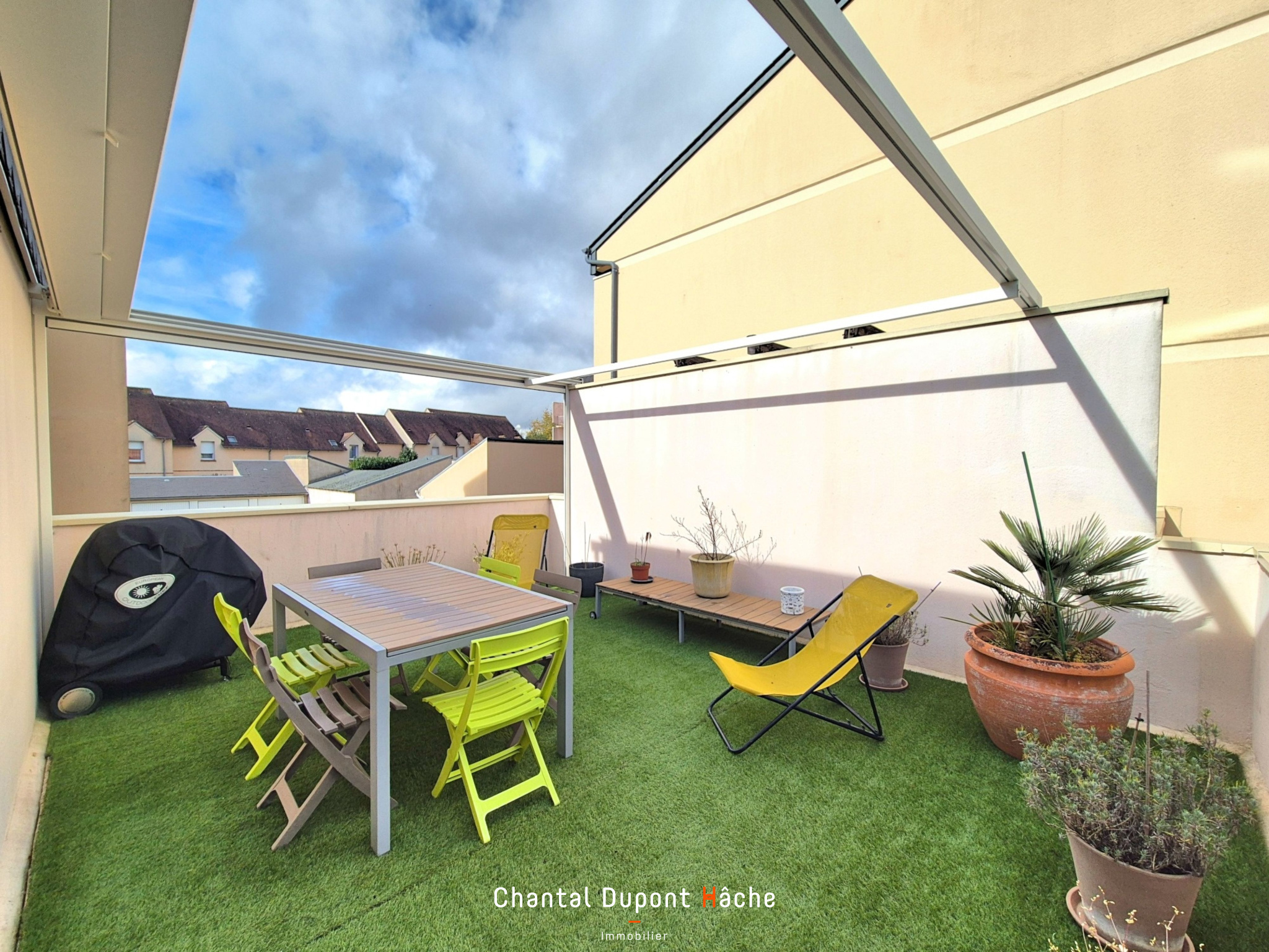 à propos de cebienVotre Agence "Chantal Dupont Hâche immobilier" vous propose à la vente ce Duplex d'environ 123m² idéalement situé à Luisant, à deux pas des commerces, écoles et transport. Cet appartement a le privilège d'un accès unique depuis l'extérieur et nous y accédons au 1er et dernier étage ! Telle une maison, il bénéficie d'une belle terrasse avec pergola automatisée et deux autres balcons. Le premier niveau vous offre une pièce de vie d'environ 38m² avec cuisine aménagée et équipée, grand cellier, un dégagement nous mène vers trois belles chambres dont une avec dressing et salle d'eau avec wc entièrement rénovée. Le second niveau, idéal pour un enfant, dispose d'une grande pièce palière desservant une chambre, une salle de jeux, une salle de bain, wc indépendant ainsi qu'un escalier menant à une pièce bureau ou chambre d'appoint ! Un garage complète les prestations de ce bien, de plus, le stationnement est très aisé dans le quartier. A visiter sans tarder !!
