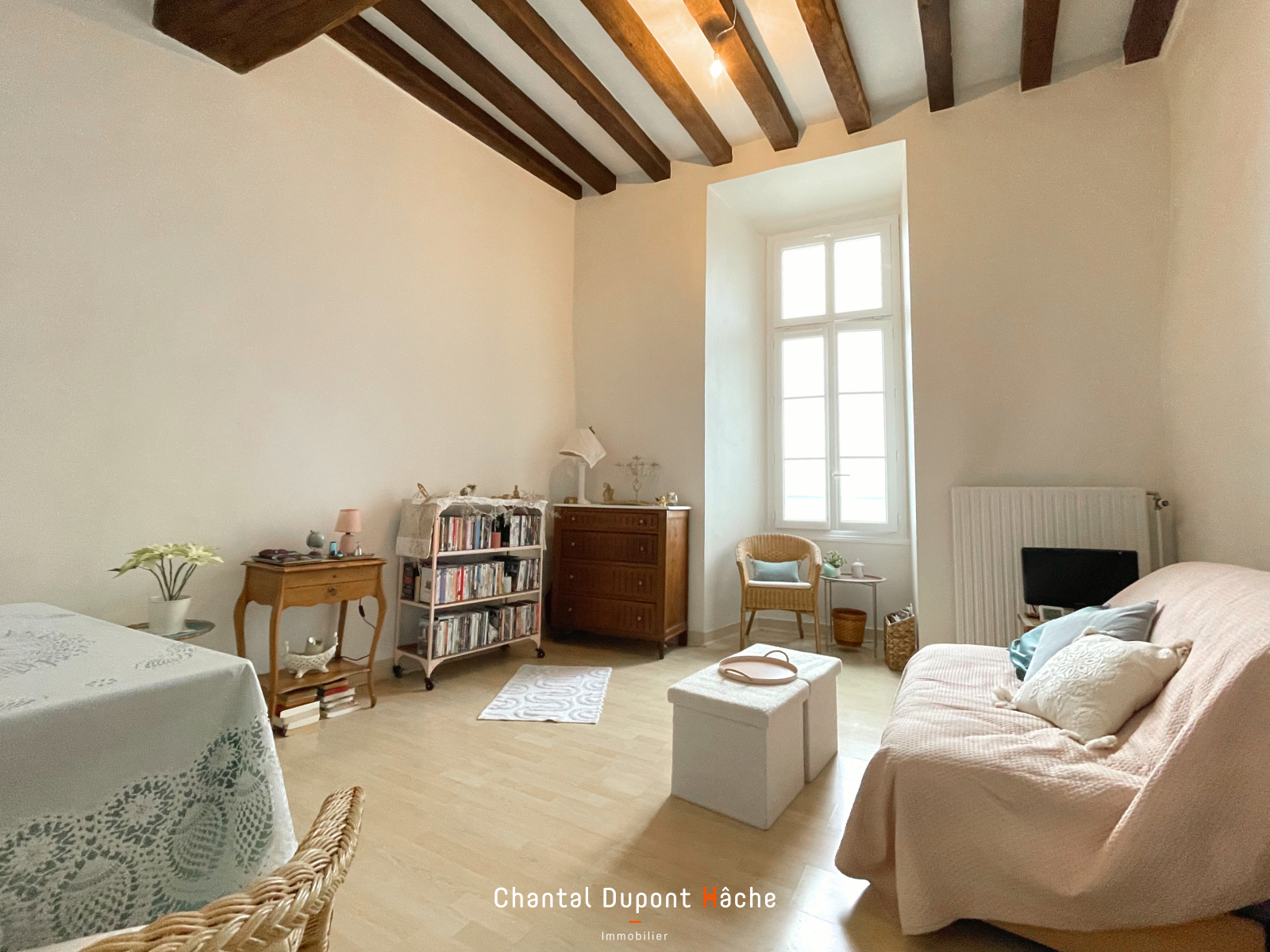 Votre agence "Chantal Dupont-Hâche Immobilier" vous propose à la vente un appartement de caractère accessible en rez-de-chaussée d'une petite copropriété sécurisée et insoupçonnée... Niché en cœur de ville et à 5 minutes à pied de la Cathédrale, son entrée nous mène d'un côté, au séjour puis à la cuisine aménagée et équipée. De l'autre côté, deux chambres, une salle d'eau et wc séparés. Comprenant un jardin commun et une cave, l'ensemble est vraiment coup de cœur, pour une vie en ville tout proche des rues piétonnes. Ses plus beaux atouts : 3m70 de hauteurs sous plafond, des poutres et pierres apparentes qui lui apportent beaucoup de cachet, chauffage individuel au gaz de ville. Cet appartement où l’on y vit comme en maison n'attend plus que vous