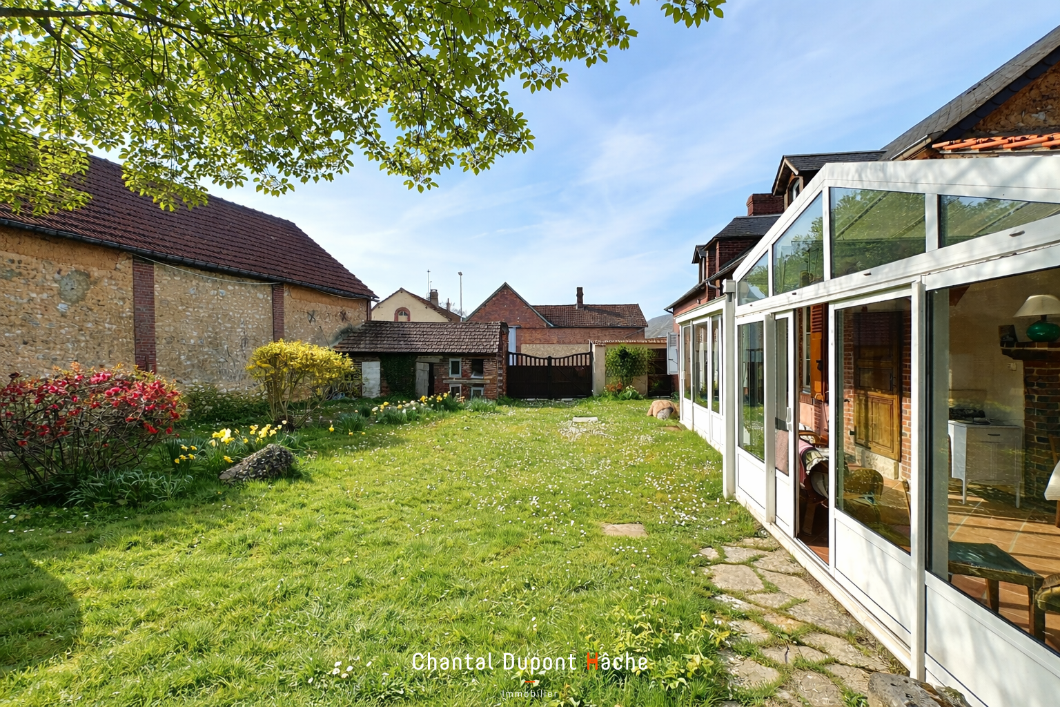 Votre Agence "Chantal Dupont Hâche immobilier" vous propose à la vente une maison de charme du XIXème dotée de plusieurs dépendances : ancienne écurie, grange avec un étage au-dessus et le confort d'une chambre spacieuse dans une autre dépendance avec salle d'eau et wc. Le charme opère dès l'entrée avec la vision sur le jardin arboré qui totalise 1317m². Les espaces de la maison au rez-de-chaussée sont bien articulés : séjour, salon, cuisine, chambre, salle de bains et wc. Une véranda en L permet de profiter pleinement dès le printemps de la chaleur des rayons du soleil avec son exposition plein sud. L'étage est tout aussi charmant avec ses 3 chambres spacieuses et sa salle de bains et wc. Une vie à la campagne très proche de la ville et de ses commodités, le calme est le maître mot dans cette ambiance bucolique... Côté pratique : chauffage électrique, cheminée décorative, travaux à prévoir. Un petit havre de paix...