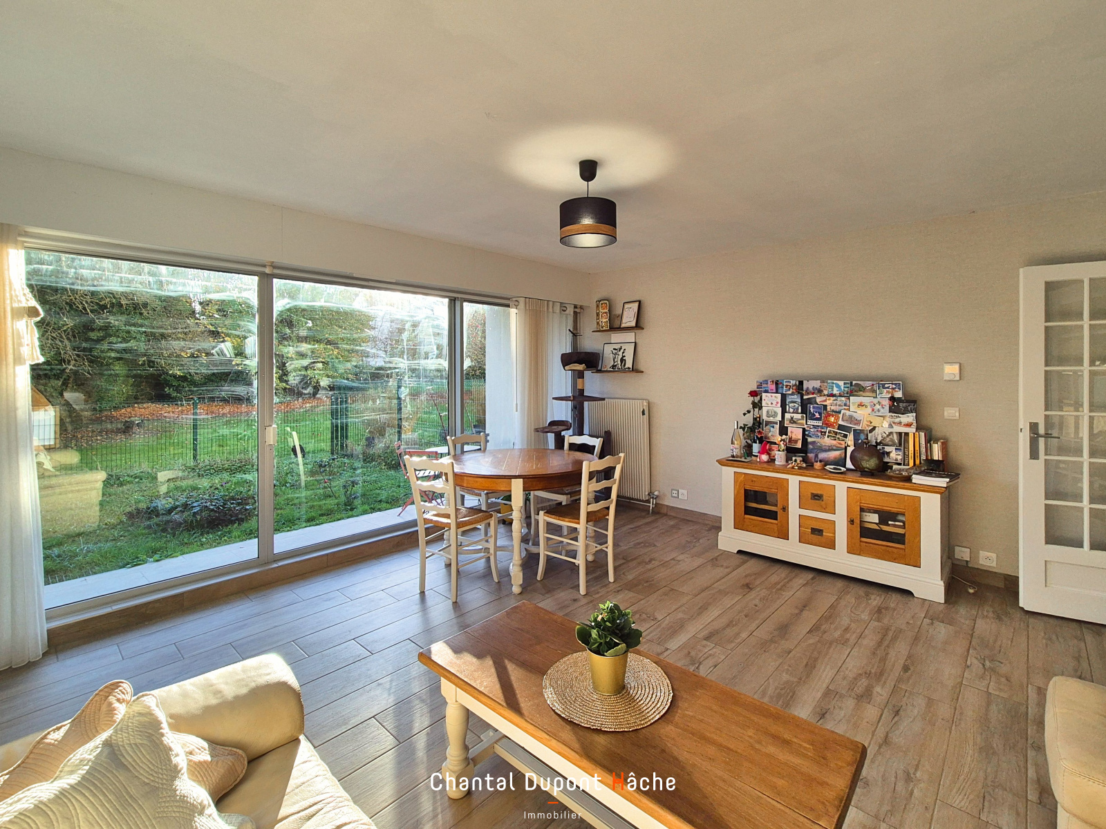 Votre Agence "Chantal Dupont Hâche immobilier " vous propose à la vente dans une résidence calme et sécurisée, ce bel appartement d'environ 54m², des années 70' entièrement rénové bénéficiant d'une terrasse et d'un jardin privatif, à 5 minutes en voiture du centre ville de Chartres. Sa situation au RDC lui offre une vue verdoyante avec une belle exposition Sud. Il est agencé comme suit : entrée avec un grand placard, d'un séjour-salon lumineux avec ouverture sur la terrasse et le jardin, d'une cuisine aménagée équipée indépendante, d' une chambre avec dressing donnant accès à la salle d'eau et un wc indépendant. L'environnement est particulièrement appréciable : verdure, chemins de promenade à proximité. Un garage est associé au bien. Idéal pour une résidence principale ou investissement locatif.